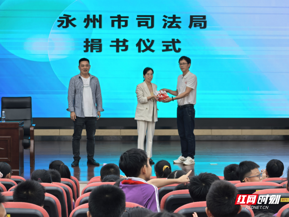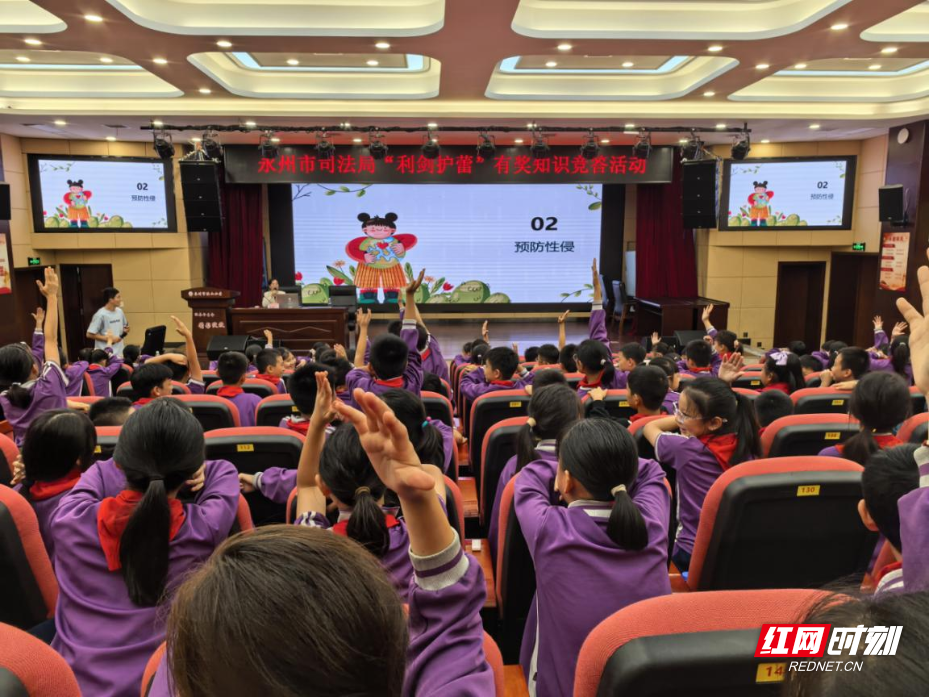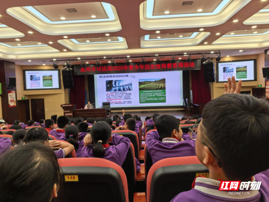 活动现场,永州市司法局向永州市映山小学每个班级赠送了《青少年趣味学法》读本,并在学校报告厅开展集中宣讲活动,法治副校长围绕校园欺凌、性侵、网络诈骗的概念、具体表现、实施法律后果、如何预防和处理,以及对未成年受害者的特殊保护等内容,作了深入浅出、生动形象的法治宣讲,通过解读典型案例开展警示教育。授课过程中,普法宣传员以情景模拟、趣味测试、角色扮演、播放电影片段等方式与同学们开展互动,充分调动了学生参与的积极性,让同学们在热烈愉悦的氛围中认识到尊法学法守法用法的重要性,帮助同学们扣好人生第一颗“法治纽扣”。